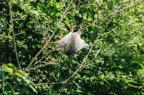 Prozessionsspinner Nest im Baum mit vielen Raupen