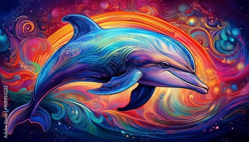 Psychadelic theme Dolphin. Spirit Animal totem guide illustration