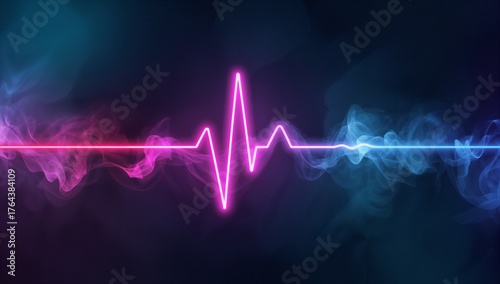 cardiogram, neon, waveform, heartbeat, digital, abstract, futuristic, vibrant, technology, pulse, electronic, glowing, gradient, dark, coloured, smoke, trail, pink, magenta, cyan, mist, haze, line, spike, center, energy, signal, rythm, health, medicals, monitor, datum, graphic, design, motion, light, dynamic, wave, flow, pattern, glow, illumination, contrast, modern, artificial intelligence