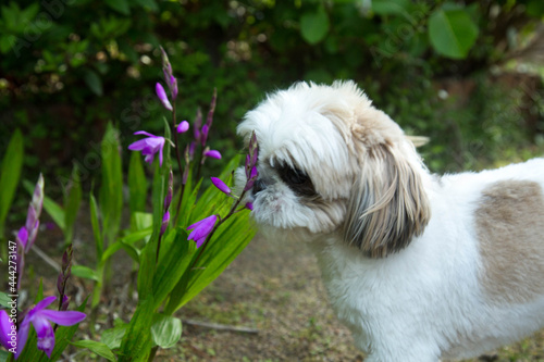 dog, animal, pet, puppy, sweet, shih tzu, canino, white, small, domestic, breed, mammal, portrait, fur, lovely, grass, studio, purebred, family, tongue