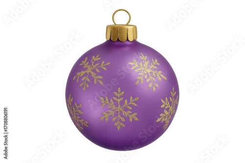 Purple christmas ball ornament with gold snowflakes on transparent background