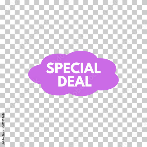 “Purple cloud SPECIAL DEAL label isolated on transparent background – promotional sale sticker”