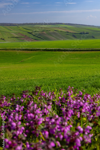 austria, hill, rolling hills, field, green, agriculture, farming, rural, landscape, nature, spring, wildflower, purple flower, blossom, scenic, countryside, travel, tour tourism, destination, europa, austrian, vibrant, colourful, idylli, peaceful, serene, beauty, meadow