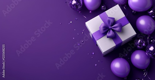 gift, purple, balloon, confetti, celebration, background, box, present, ribbon, party, birthday, anniversary, holiday, festive, joy, happiness, surprise, event, marketing, advertising, design, template, banner, card, image, graphic, illustration, digital, concept, abstract, texture, colours, violet, luxury, elegant, special, occasion, romance, love, gift wrap