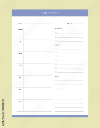 (Purple) Week Planner. Minimalist planner template set. Vector illustration.