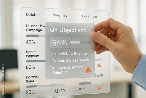 Quarterly Objectives Tracker with Progress Metrics and Customer Retention Warnings