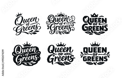 Queen of Greens Typography. Queen of greens. Set lettering. harmonious lettering variations of the same emblematic concept, each with different artistic