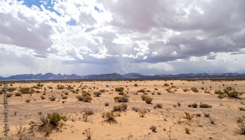 Quiet and Vast: Empty Desert Landscape Under Cloudy Sky