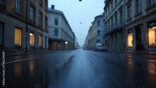 Quiet rainy street scene urban city photography evening low angle stillness in motion