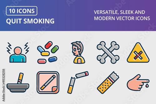 Quit Smoking Thick Line Filled Dark Colors Icon Set