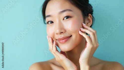 care, soft, fashion, attractive, pretty, healthy, style, touch, beautiful, glowing, woman, natural, make-up, hand, tender, skincare, beauty, glamour, skin, elegant, portrait, nail, smile, model, face, closeup