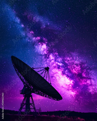 radio, telescope, lactic, way, galaxy, space, astronomy, night, star, exploration, science, universe, cosmos, observatory, technology, astrophysics, discovery, signal, communication, research, antennae, dish, silhouette, vibrant, purple, pink, sky, deep, celestial, extraterrestrial, scientific, interstellar, cosmic, astronomic, observation, searching, photo, astrophotography