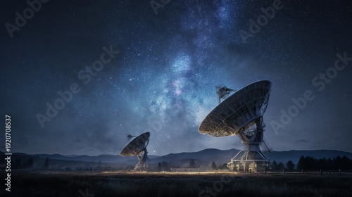 space, astronomy, observatory, antennae, science, research, technology, signal, communication, galaxy, cosmos, universe, exploration, deep, night, sky, star, lactic, way, nebula, immensity, landscape, nature, horizon, mountain, rural, field, grass, remote, darkness, light