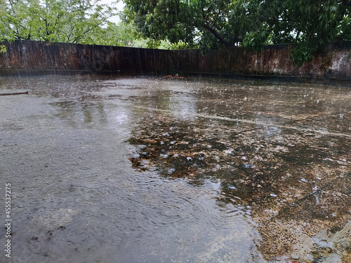water, nature, landscape, tree, tree, stream, view, scenery, outdoors, rain, rooftop, building, raindrop, cloudburst