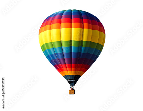 Rainbow Balloon Flying Over Clouds, Top-Down Aerial View, Isolated PNG