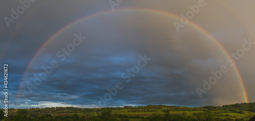 rainbow, storm, rain, sky, weather, colours, colourful, cloudy, cloud, summer, countryside, country, landscape, scenic, village, beautiful, natural, colours, scenery, travel, environment, view, background, field, nature, meadow, grass, cloud, green, blue, forest, double, rural, light, tree, spectrum, beauty, bright, scene