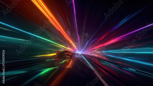 tunnel, car, speed, light, motion, colourful, rainbow, high-coloured, abstract, background, light, neon, futuristic, design, art, photo, visual, image, illustration, digital, graphic, fast, driving, road, night, colours, red, orange, yellow, green, blue, purple, transport, vehicle, isolated, contemporary, artistic, modern, dynamic, creative