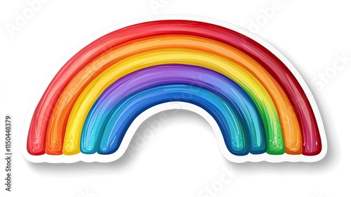 Rainbow sticker, white background, vinyl or digital art. LGBTQ color, decoration clipart, emoji pride illustration, creative template