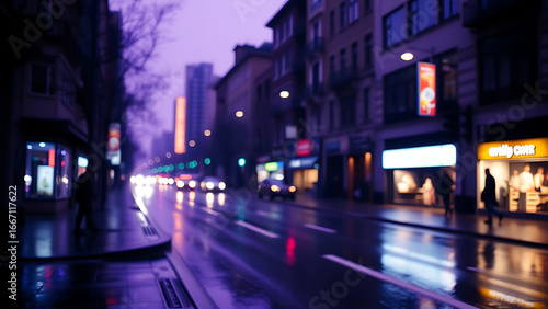 Rainy Purple City Street at Night