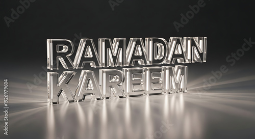 ramadan, text, typography, crystal, glasses, transparent, glossy, silver, metallic, modern, minimal, elegant, greeting, lettering, holiday, celebration, islamic, muslim, eid, render, design, graphic, background, luxury, shining, sparkle, glamour, clean, white, grey, studio, lighting, concept, decorative, creative, title, header, web, banner, digital, art, monochrome, clarity, three, dimensional