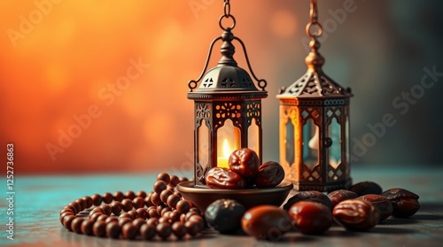 Ramadan Lantern Dates and Prayer Beads Festive Image