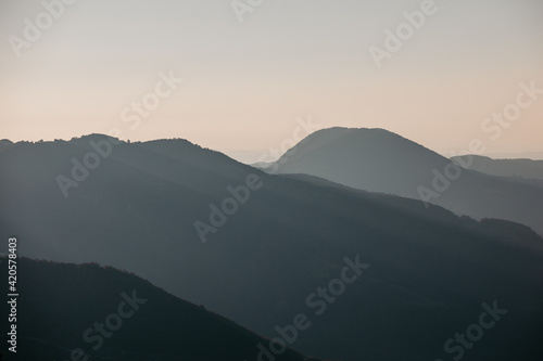adventure, copy space, copy space, countryside, dawn, day, daylight, daytime, fog, haze, hill, landscape, light, mist, misty, mountain, mountain chain, natural, nature, nobody, outdoors, panoramic, peak, photo, photo, range, scenery, scenic, sky, slope, sun, sunset, terrain, travel, vale