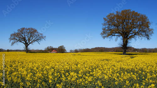 field, yellow, countryside, heaven, nature, spring, farming, flower, tree, rapeseed, blue, rural, countryside, plant, cloud