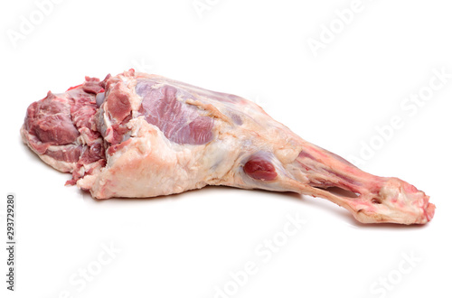 Raw lamb leg on white background