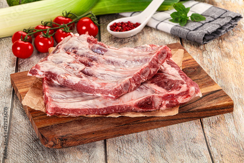 rib, pork meat, raw, uncooked, spare, bone, meat, pig, food, fresh, ingredient, cooking, protein, bar-b-q, red, cut, dinner, cookery, white, background, chop, butcher, cook, kitchen, rib, closeup, culinary, garlic, rustic, spice