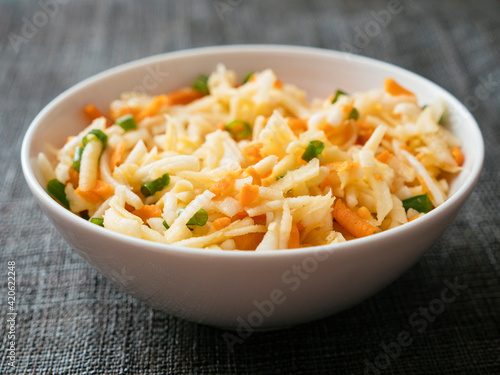 apple, apple, bowl, carrot, delicious, food, freshness, fruit, healthy, healthy eating, homemade, homemade, indoor, meal, nobody, ready-to-eat, rutabaga, salad, shredded, coleslaw, turnip, vegan, vegetable, vegetarian