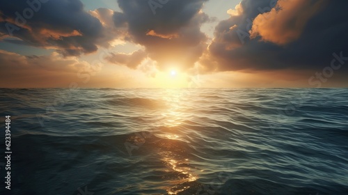 Rays of light after rain storm, seascape with sun reflections on water surface Generative AI