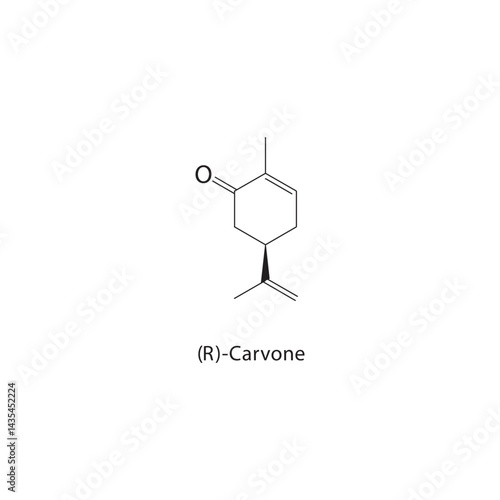 (R)-Carvone skeletal structure. Monoterpene ketone compound schematic illustration. Simple diagram, chemical formula.