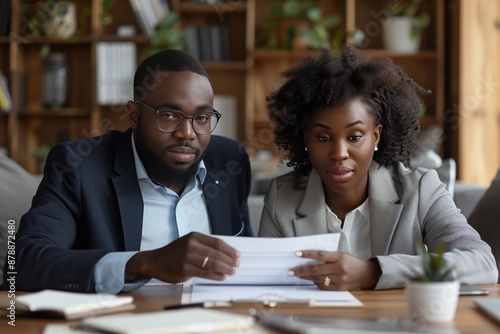 real estate, realtor, african, agent, client, client, signing, consultation, mortgage, agreements, confident, young, couple