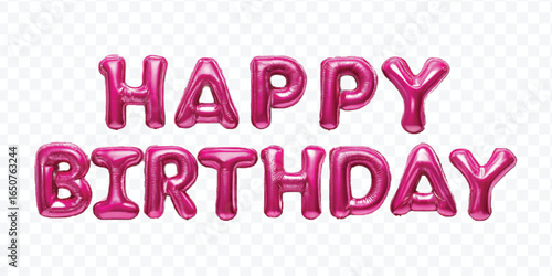 realistic 3d HAPPY BIRTHDAY typography text made by with different colour foil balloons isolated on transparent background