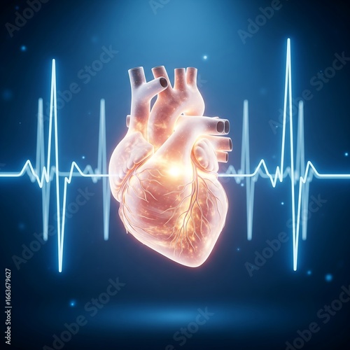 Realistic 3D Human Heart with ECG Line | Medical Anatomy Illustration