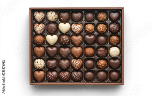 Realistic 3D render of a box of assorted chocolates in a heart shaped package symbolizing love romance and gifting isolated on white background PNG