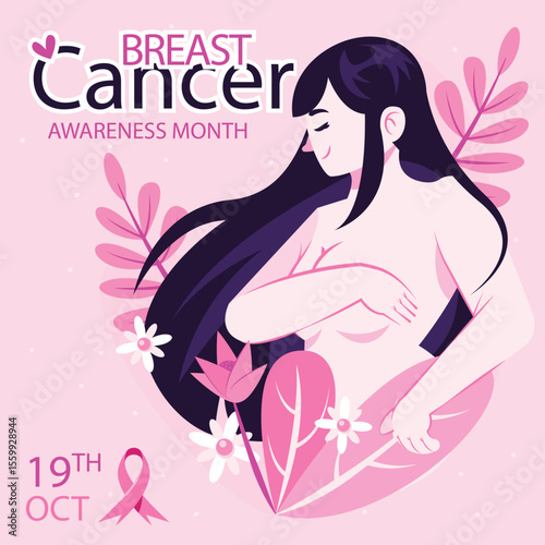 Realistic Breast cancer awareness month Horizontal banner