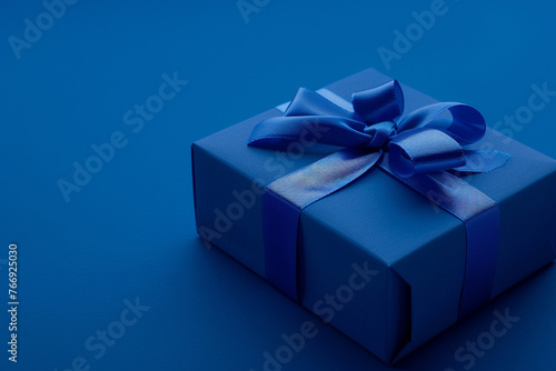 Realistic cobalt blue gift box on cobalt blue background, studio lighting, dof, blue overtones