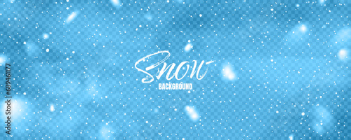 Realistic falling snow with snowflakes. Colorful winter background for Christmas or New Year card. Frost storm effect. Vector illustration