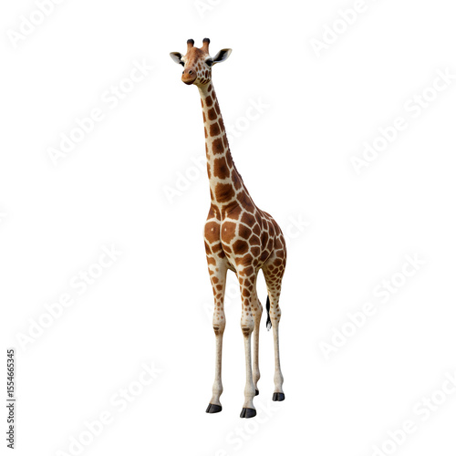 giraffe, animal, wildlife, african, savanna, mammal, realistic, isolated, tall, creature, long neck, half face, majestic, wild, detailed, clip art, standing
