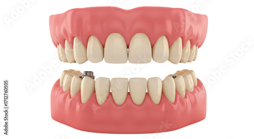denture, dental, teeth, mouth, oral, prosthetic, dentistry, anatomy, model, human, set, upper, lower, full, complete, artificial, false, medicals, health, care, hygiene, cosmetic, restoration, teeth, gum, pink, white, clean, healthy, smile, education, study, illustration, object, isolated, background, studio
