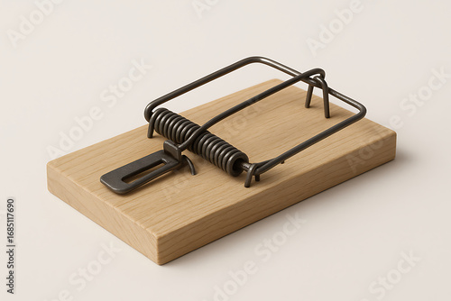 Realistic snap trap for mice and rats made of wood and metal, traditional spring-loaded rodent trap for pest control and extermination, generative AI illustration.