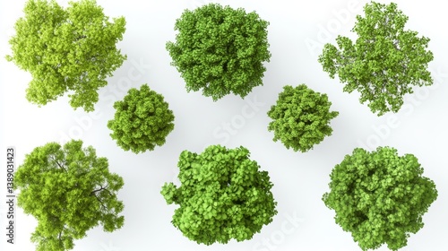 Realistic Top View Tree Set Isolated on White Background