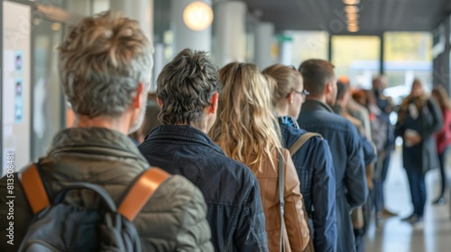 Rear view of attendees queuing up to ask questions during the interactive panel discussion at the business meeting, demonstrating active participation