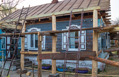 reconstruction, house, old, construction, scaffolding, repair, wall, building, improvement, restoration, work, new, architecture, residential, window, apartment, industry, staircase, maintenance, frame, metal, exterior, facades, builder, security, rebuilding, concept, design, roof, siding, in plaster, home improvement, brick, extension, professional, cable, contractor, tool, paint, remodelling, men at work, material, indoor, body, people, land