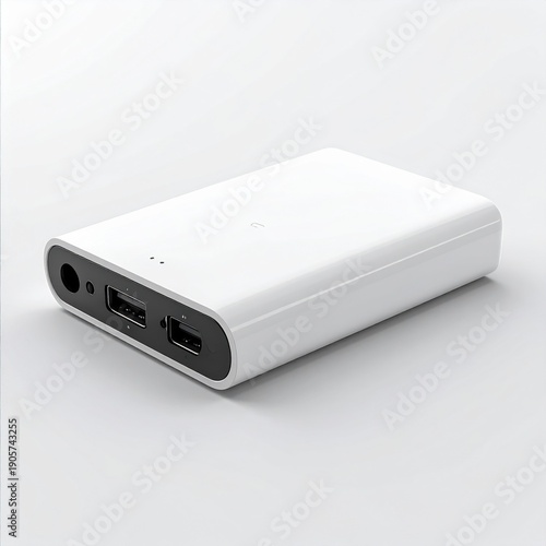 power, bank, portable, charger, battery, energy, electricity, device, contraption, technology, electronic, usb, charging, mobile, phone, accessory, white, grey, background, isolated, object, rectangular, modern, sleek, compact, rechargeable, source, backup, connectivity, output, input, port, wire, cable, studio