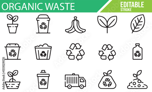 Recycling and Organic Waste Management Icons Set