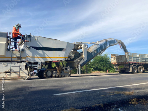 Recycling Road Surface is scraping the old road surface. Work to expand traffic lanes