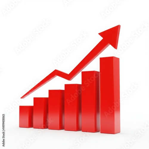 three-dimensional, graph, bar, upward, trend, growth, chart, positive, business, financial, market, red, datum, visualisation, progress, success, increasing, rising, indicator, economic, statistical, arrow