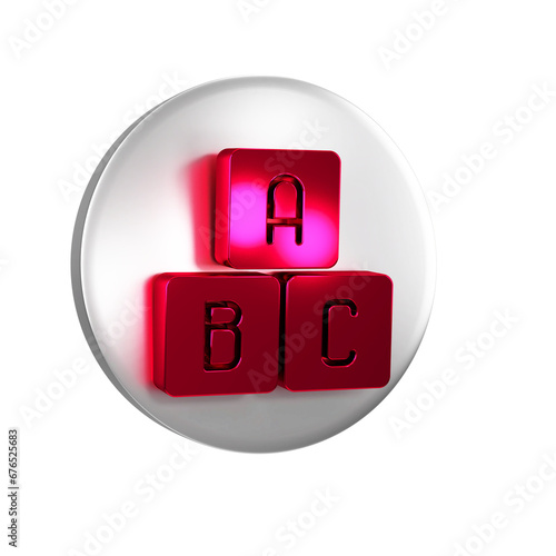 Red ABC blocks icon isolated on transparent background. Alphabet cubes with letters A,B,C. Silver circle button.